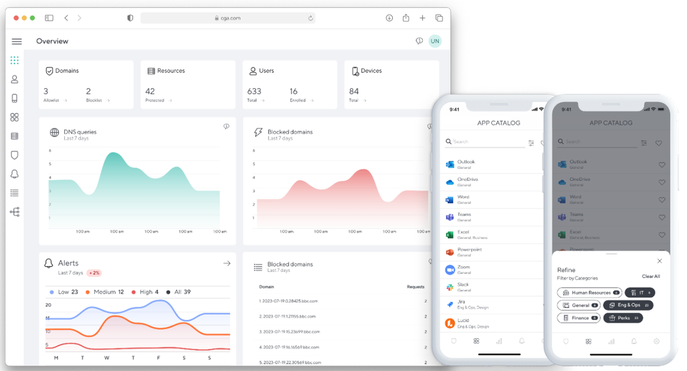 - Permite que los empleados y socios accedan a aplicaciones corporativas y cargas de trabajo en la nube sin crear superficies de ataque adicionales.Protección contra phishing y bloqueo de amenazas a nivel de dispositivo- Los usuarios no necesitan instalar o mantener software adicional para esta protección, lo que elimina la exposición asociada con redes y dispositivos móviles no confiables.
